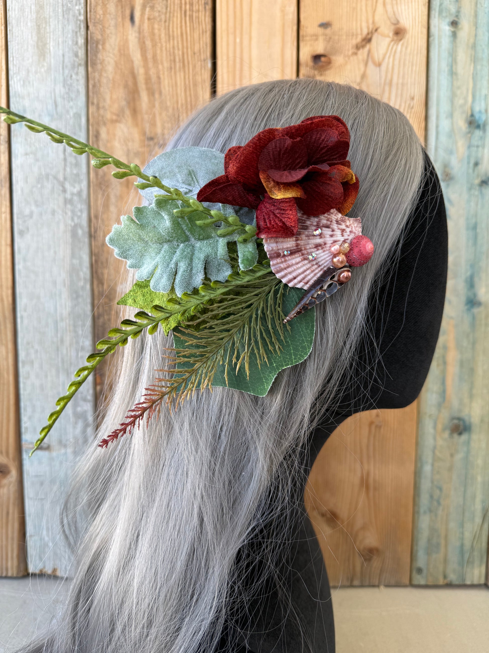 This hair-piece features a natural shell