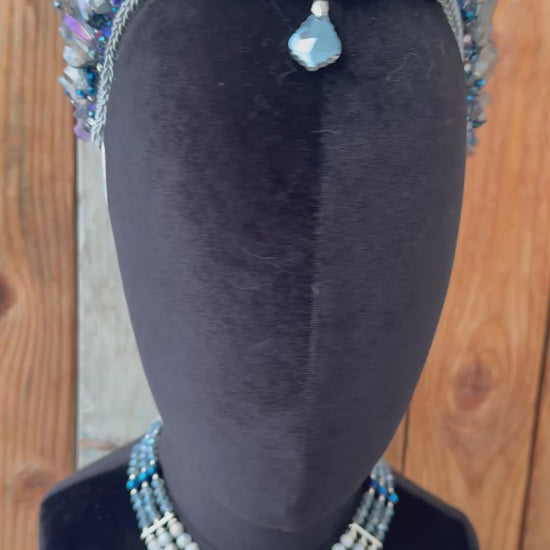 This hand crafted headpiece features a filagree center with beautiful mother of pearl.