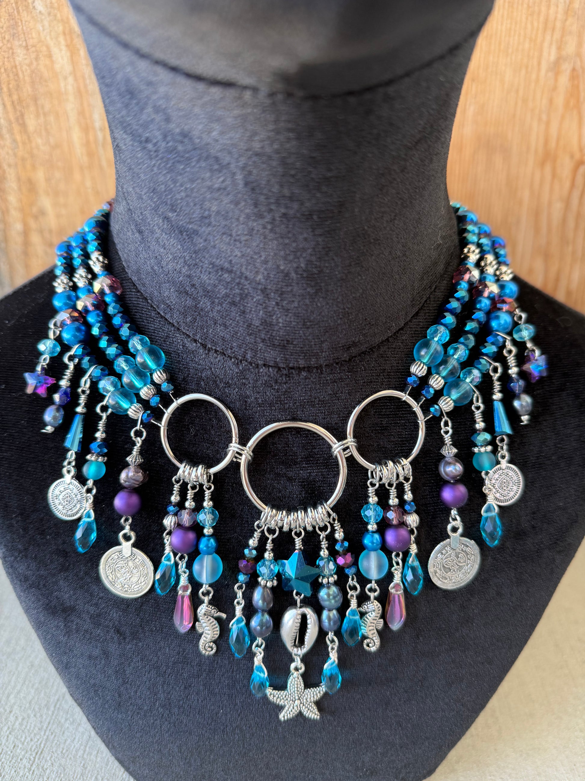 This headpiece has been tested by me In fresh water only. Salt/chlorinated water has only been tested on my headpieces by my mermaid customers. Please remove chains piece before swimming. Swimming with them is at your own risk and may cause knotting or breaking.